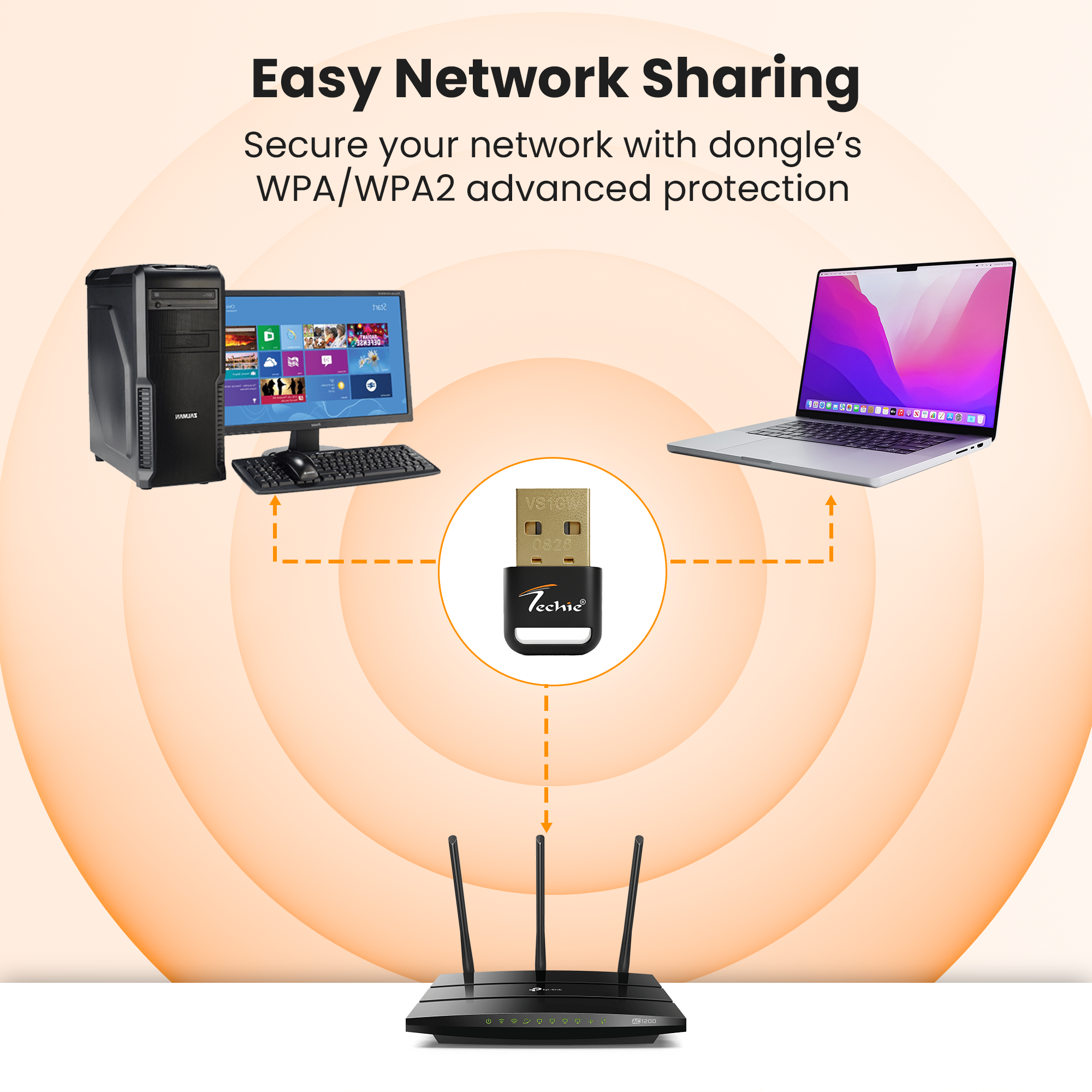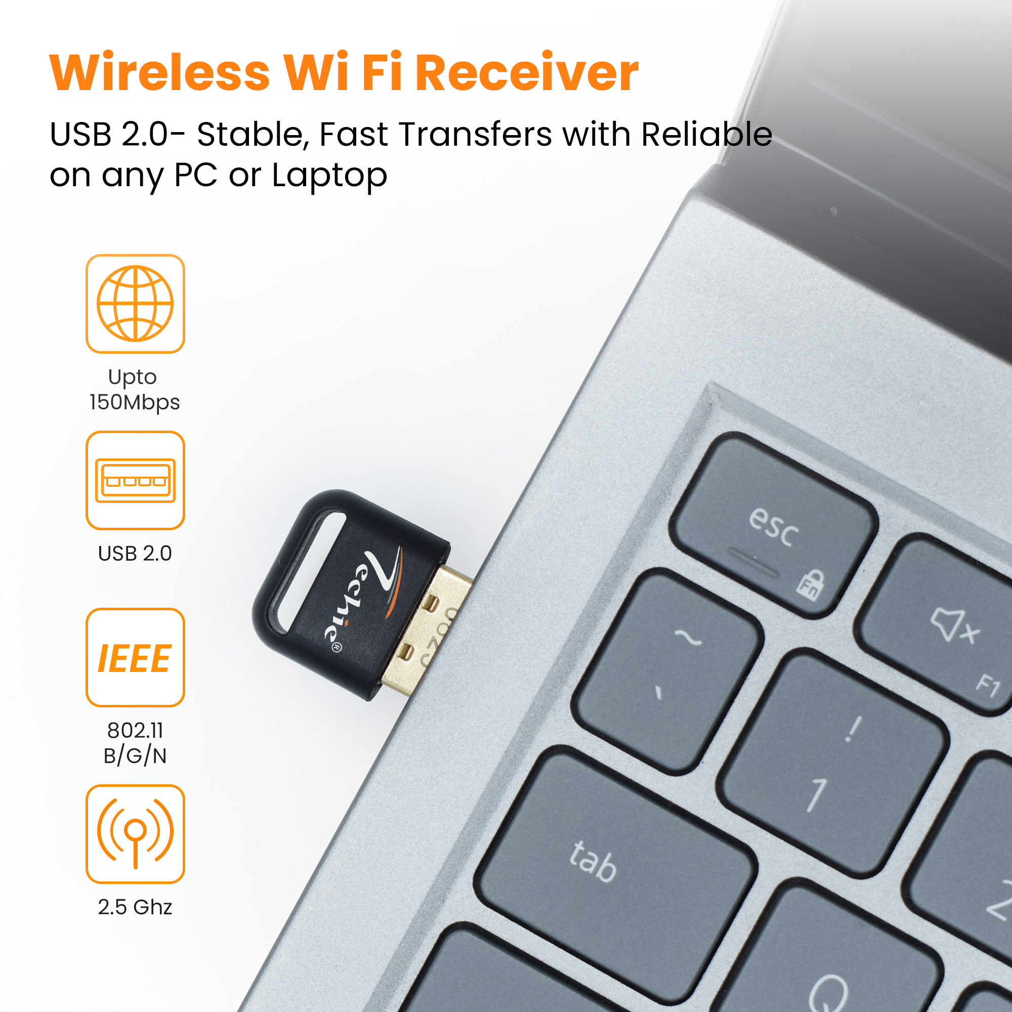 Techie Wireless adapter allows users to connect a desktop or notebook computer to a wireless network at a high speed of 150Mbps. 2.4GHz for flexible connectivity, upgrades your devices to work with the latest band WiFi router for faster speed and extended range.