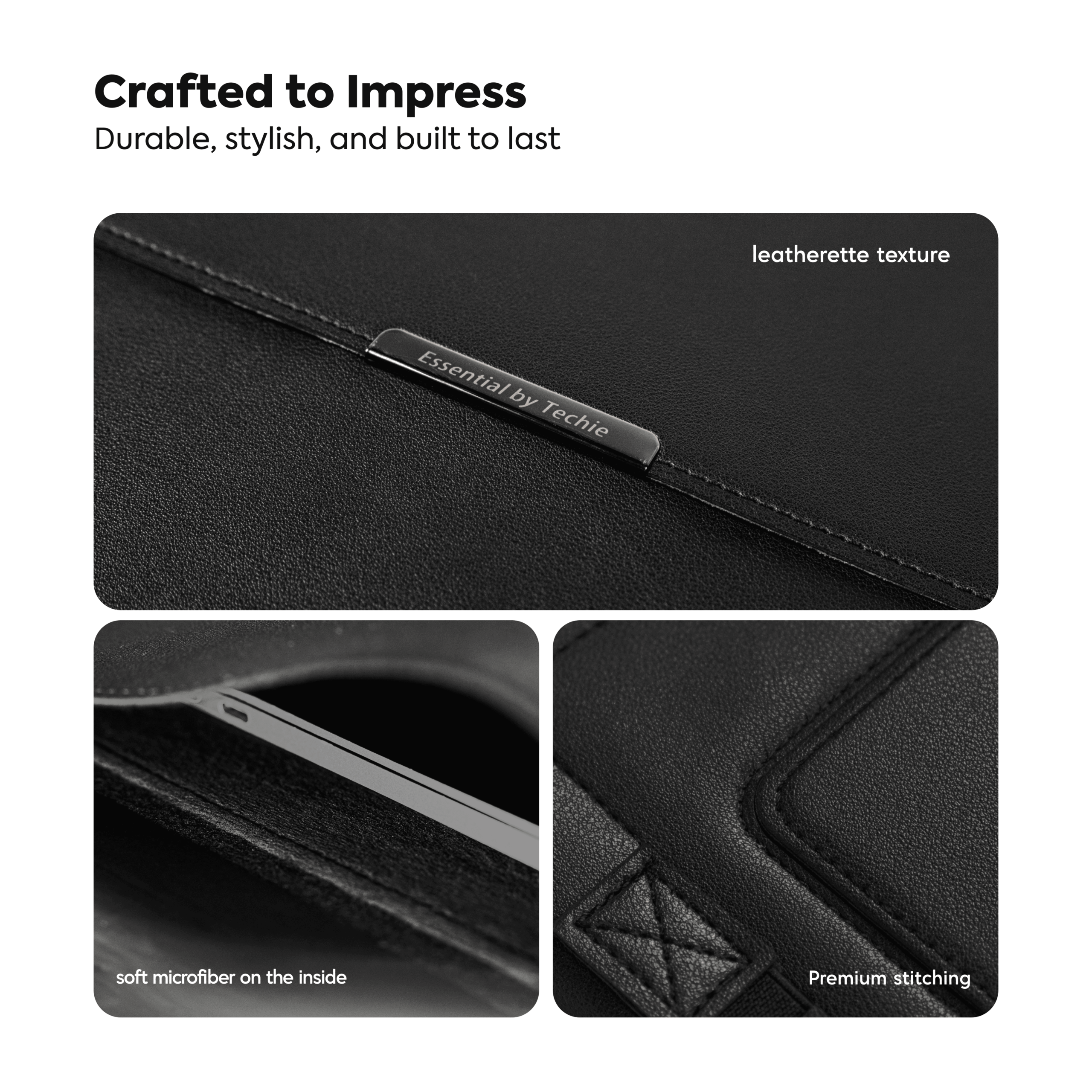 Premium leatherette exterior with precision stitching, soft microfiber lining inside—durable, stylish, and built to last.