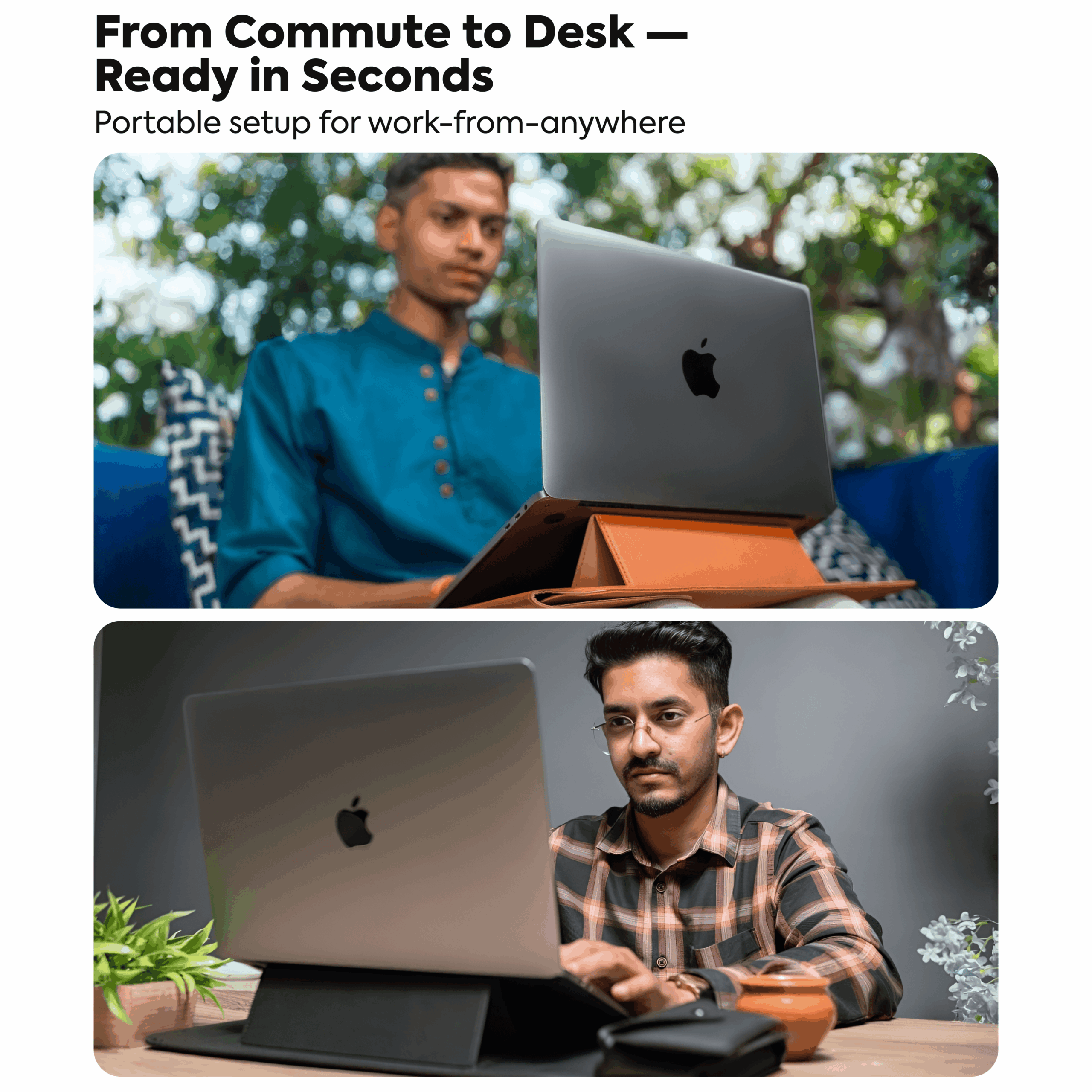 The 3-in-1 sleeve that becomes your desk anywhere—carry it, unfold it, get to work in seconds.