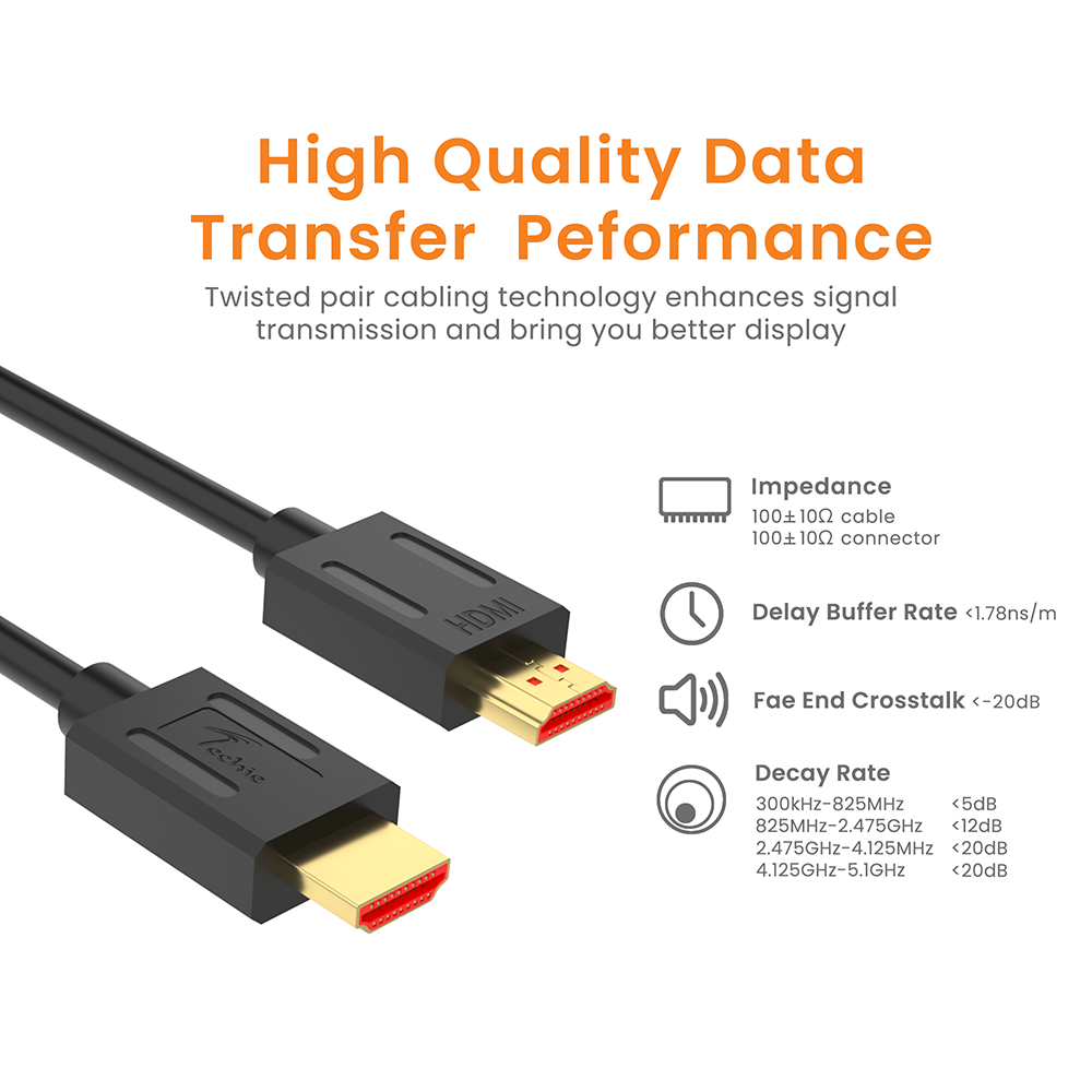 Built with twisted pair cabling technology, the Techie HDMI 2.0 Cable enhances signal stability and delivers superior display quality. With optimized impedance, ultra-low delay buffer rate, minimal crosstalk, and controlled signal decay, it ensures crystal-clear 4K@60Hz transmission for both audio and video — even over longer distances.