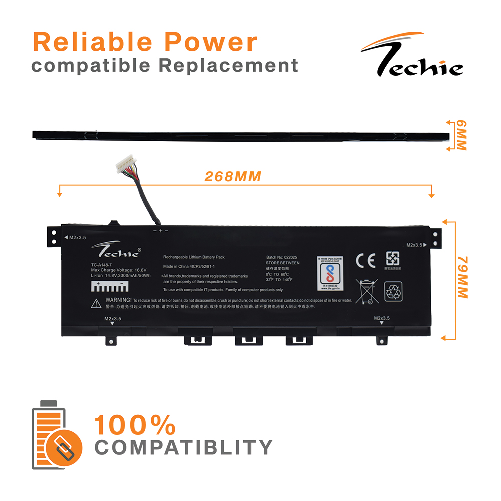 - Voltage: Operating at a reliable 14.8V, the Techie Compatible Battery for HP KC04XL ensures seamless compatibility and optimal laptop performance.