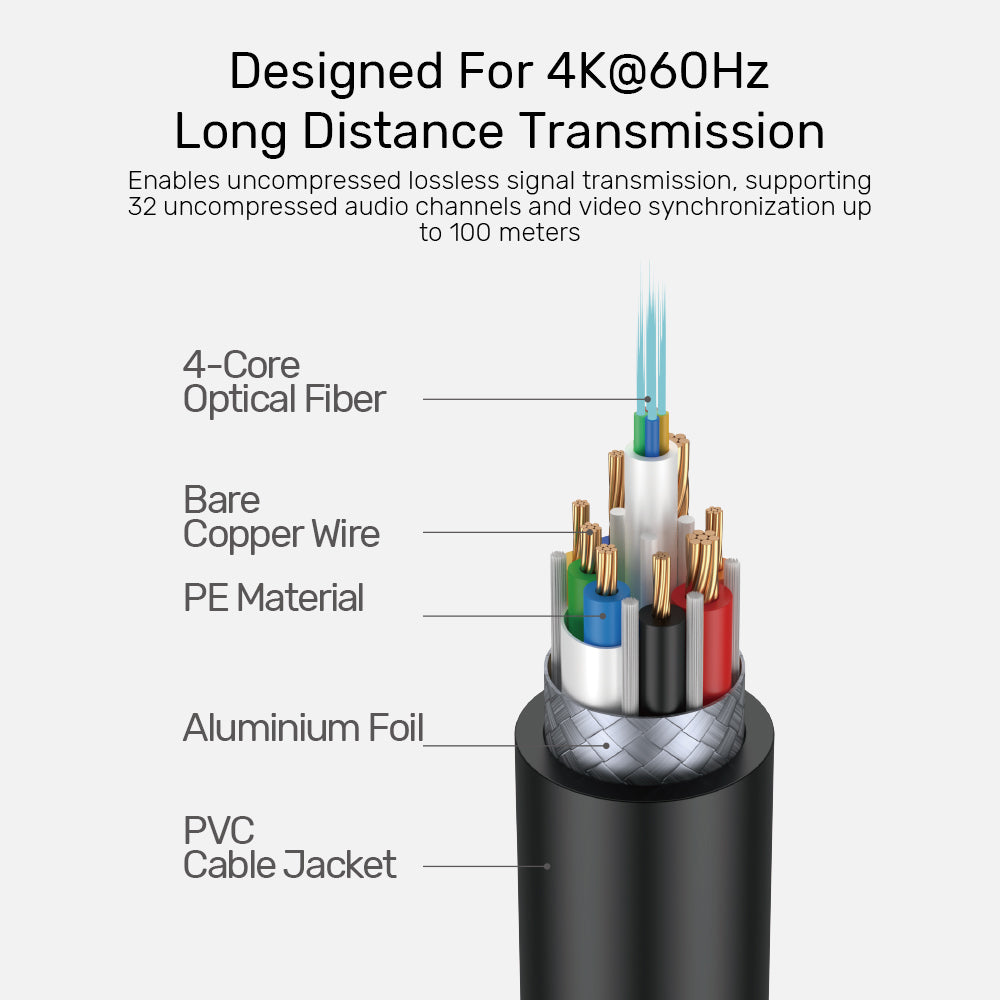 4-core optical fiber and shielding ensure zero signal degradation—perfect for uncompressed audio and video transmission.