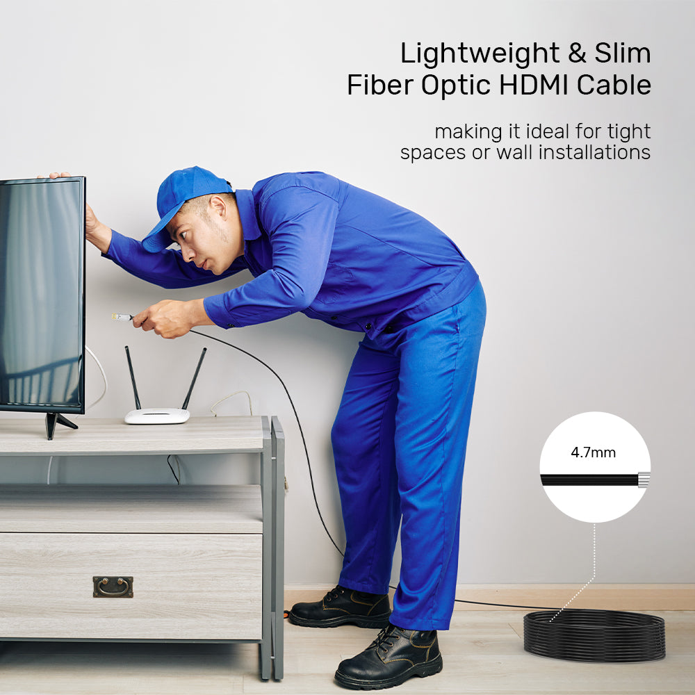 For flexibility, making it an excellent choice for tight spaces or wall installations. Its streamlined design allows for easy routing and setup, ensuring a clean and organized look in any environment. Enjoy high-quality 4K video transmission without the bulk, making it a practical solution for your home theater or professional setups.