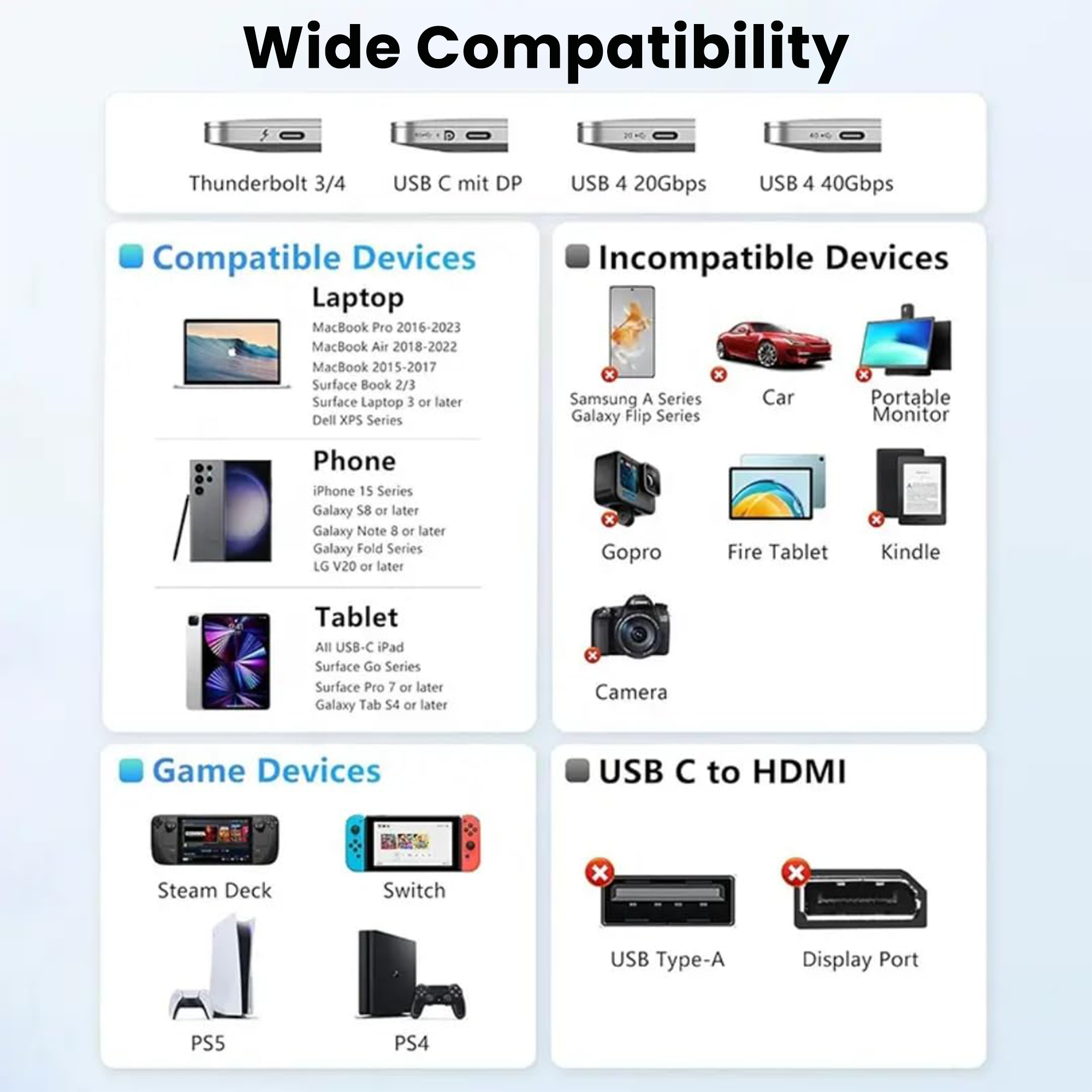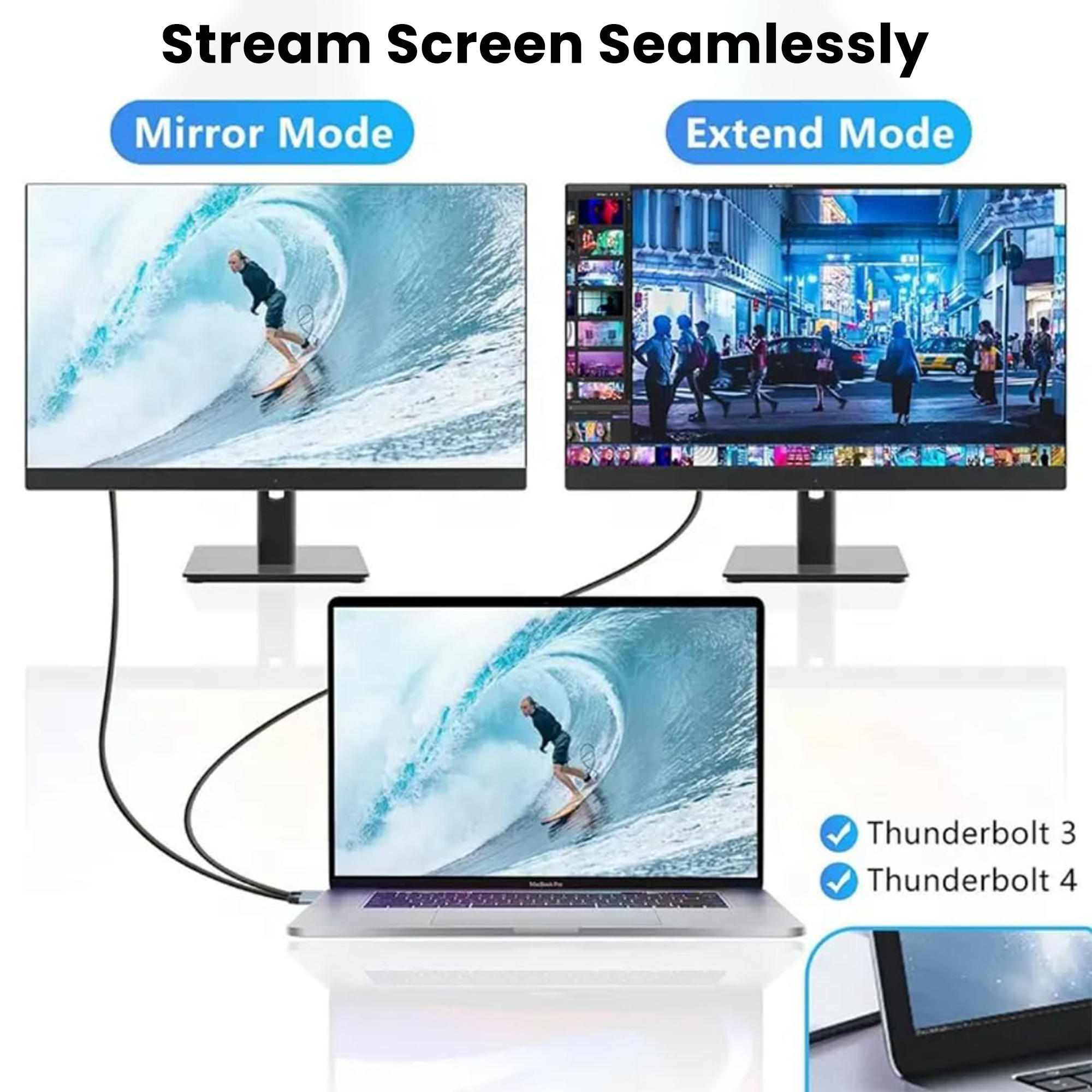 Wide compatibility (Thunderbolt 3/4, USB-C with DP Alt Mode)